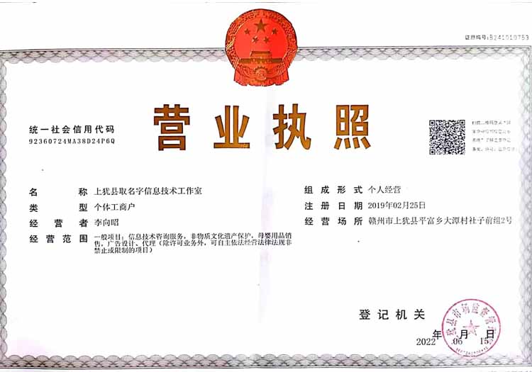 取名字网公司简介和工商营业执照